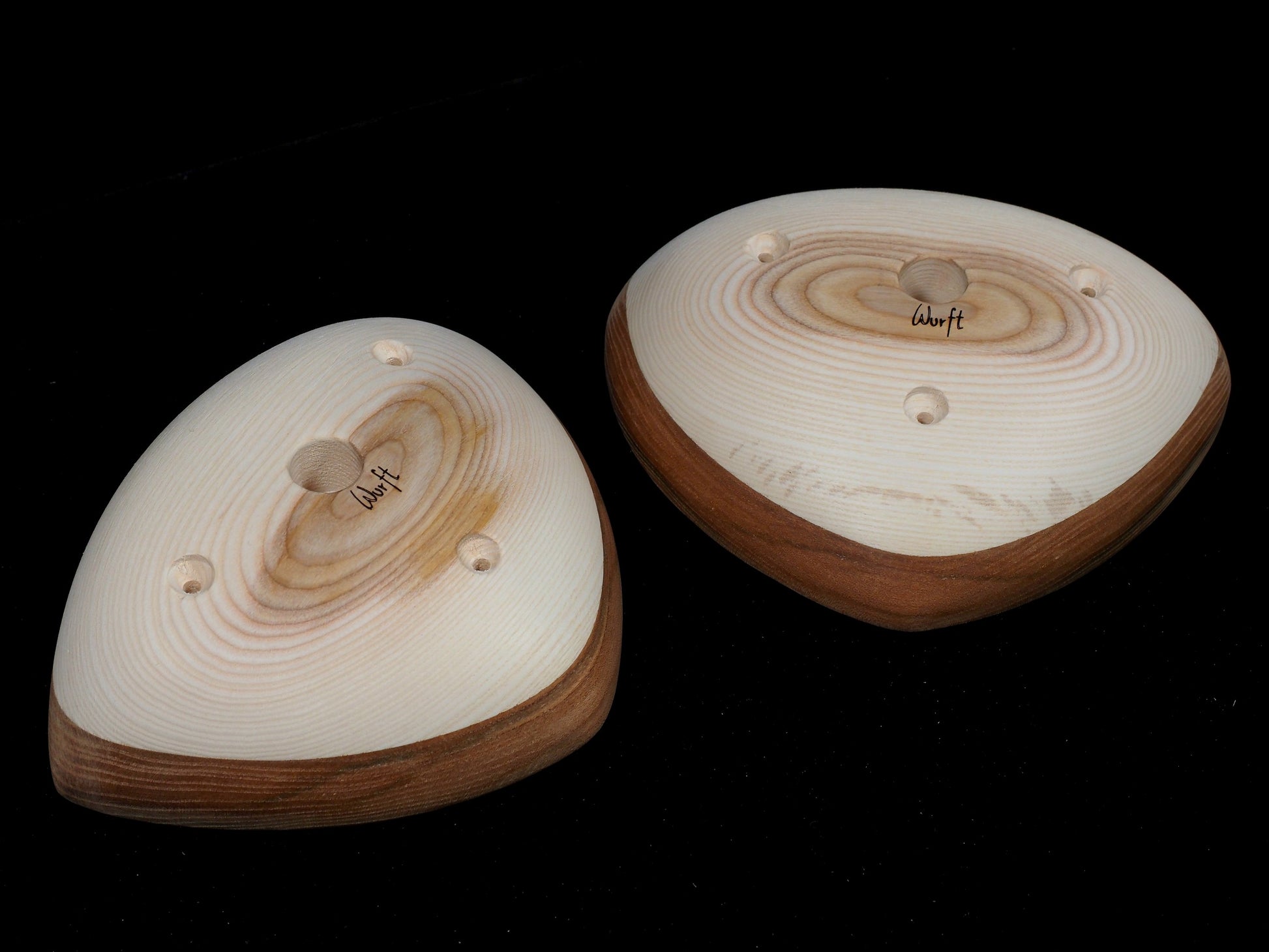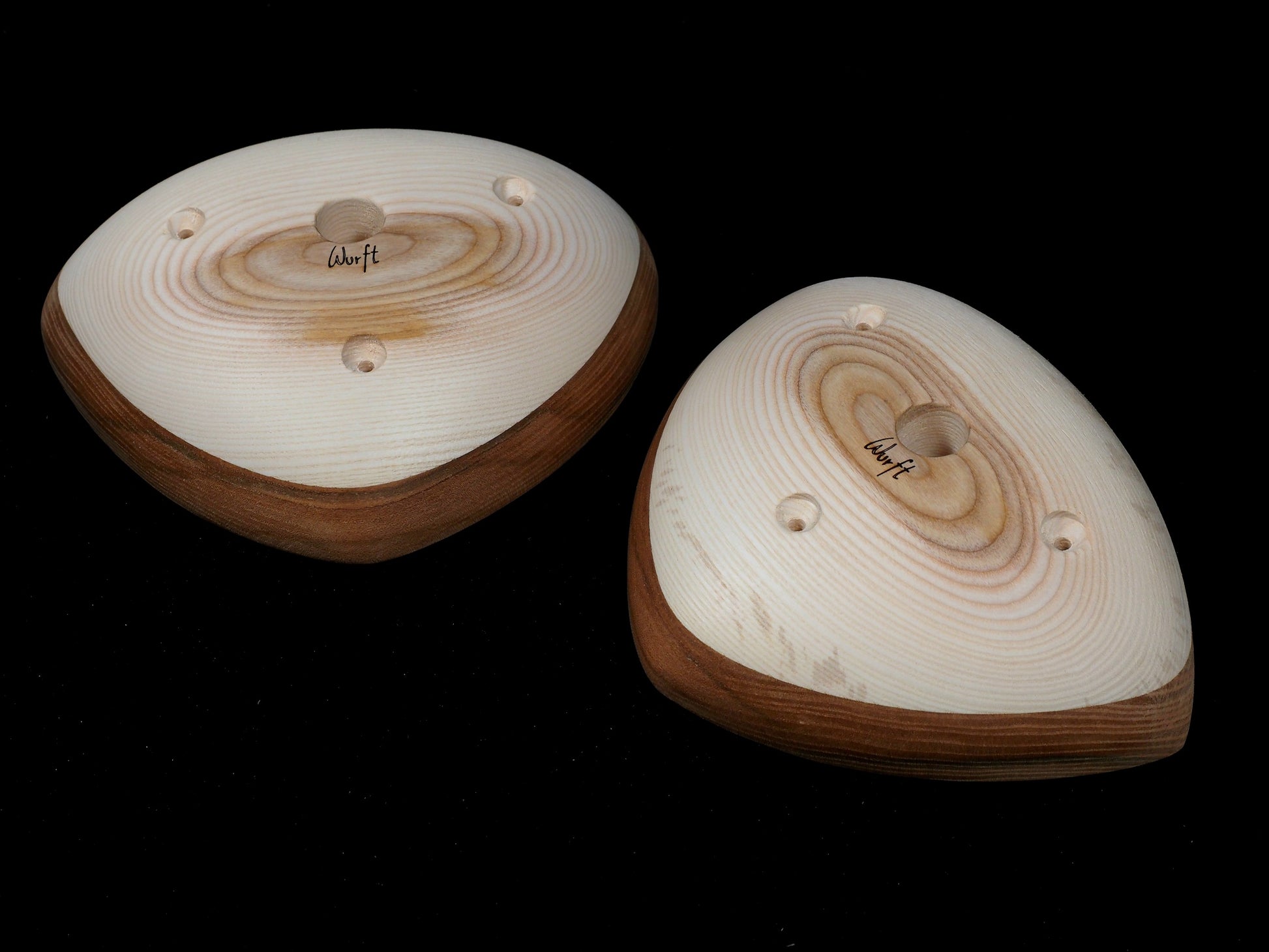 One pair of Symmetrical Premium Incut Slopers (56 mm thick) made from Ash and Elm.