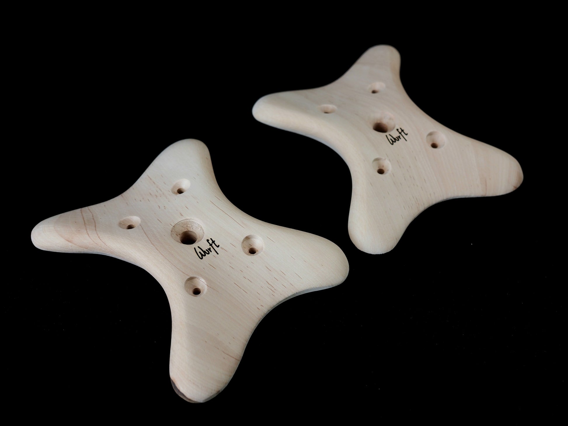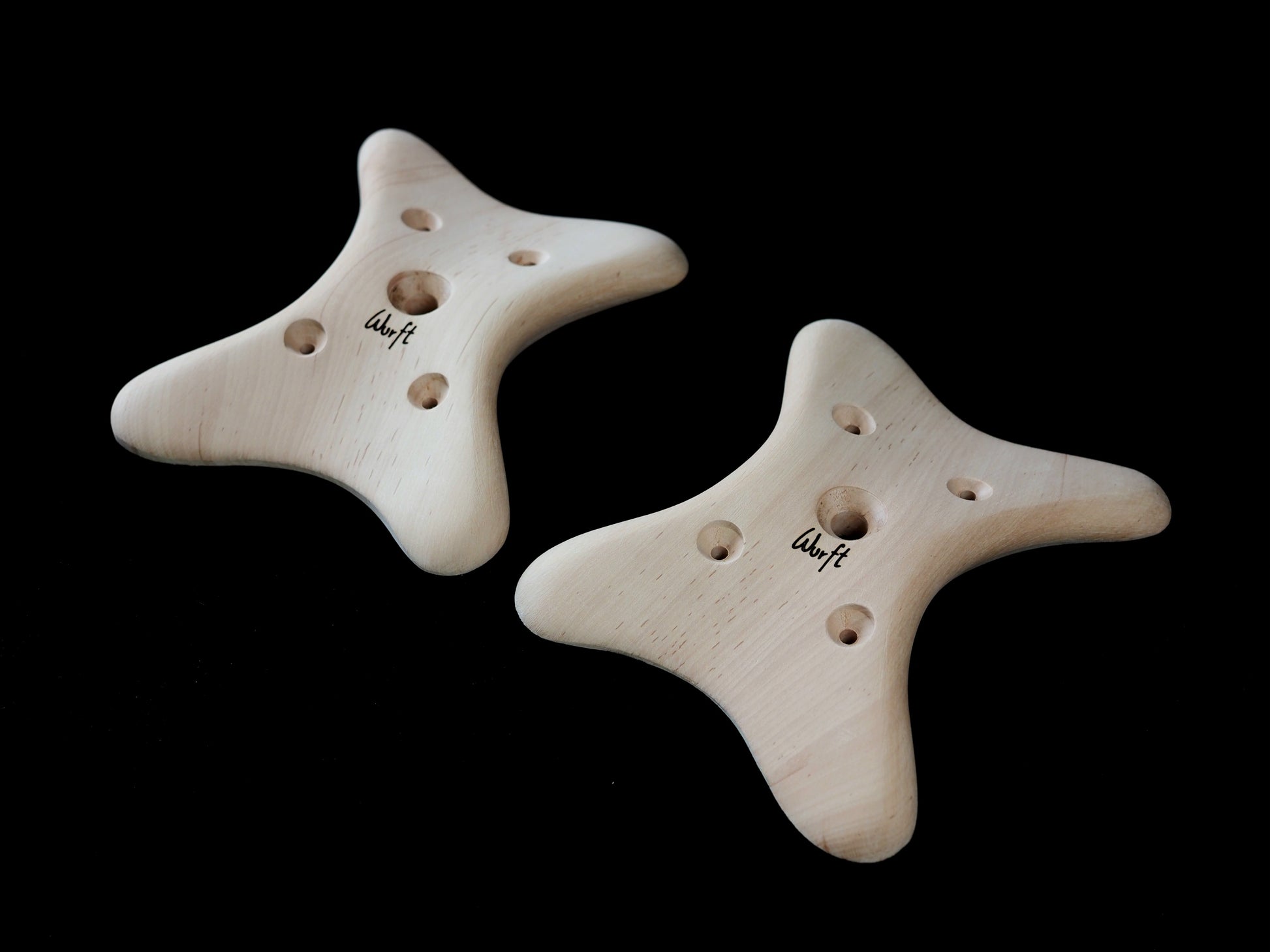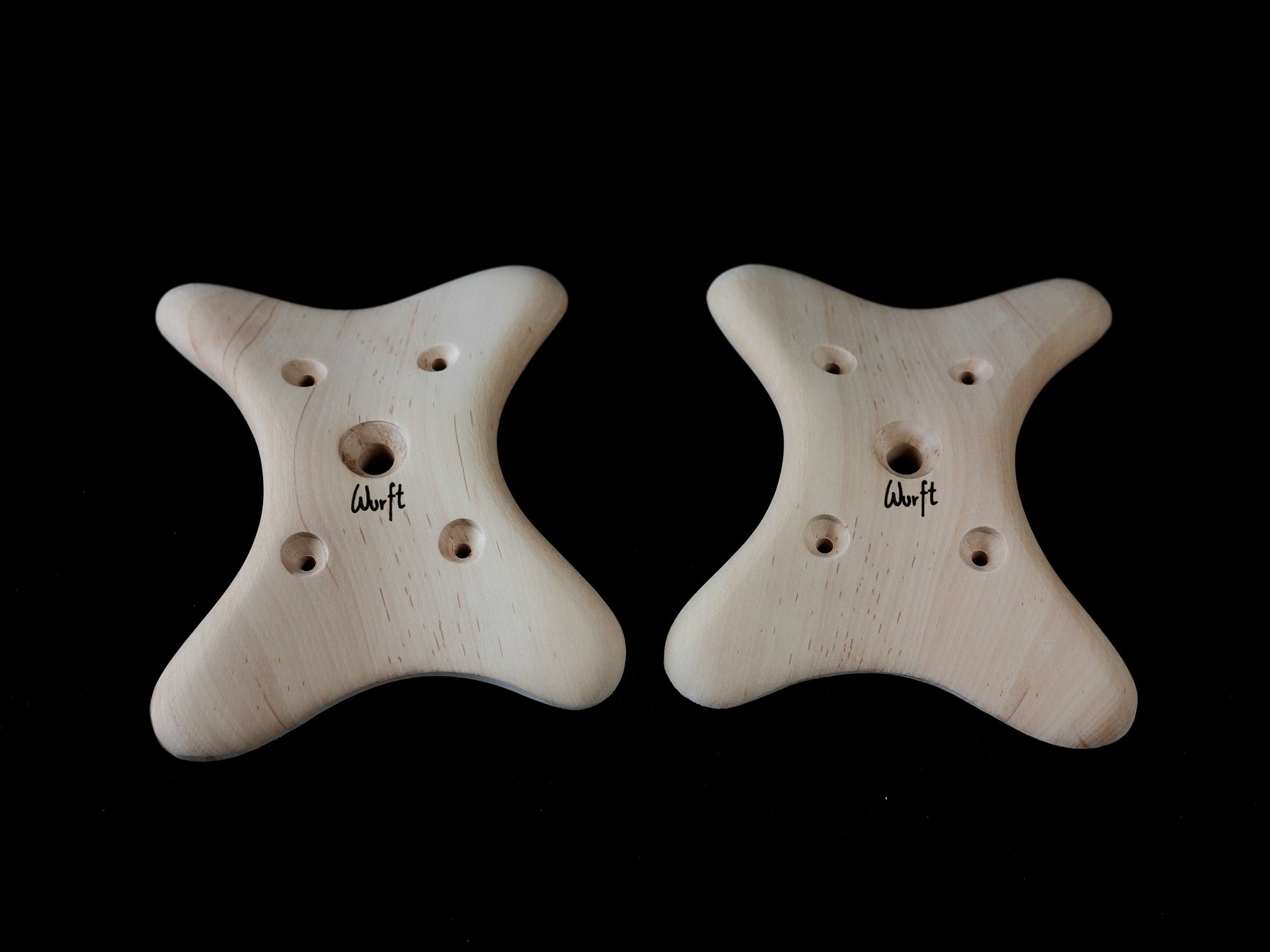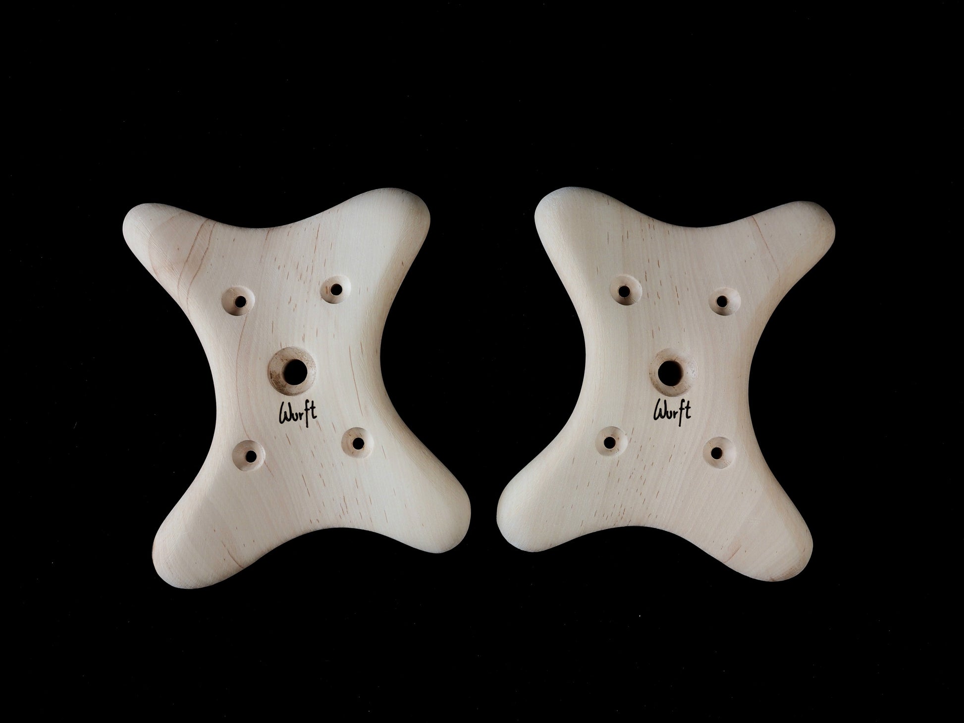 The holds are made from locally sourced hardwood. It is recommended to mount each pinch with 4 screws but each hold also has a hole for an M10 countersunk bolt. Hardware is not included.