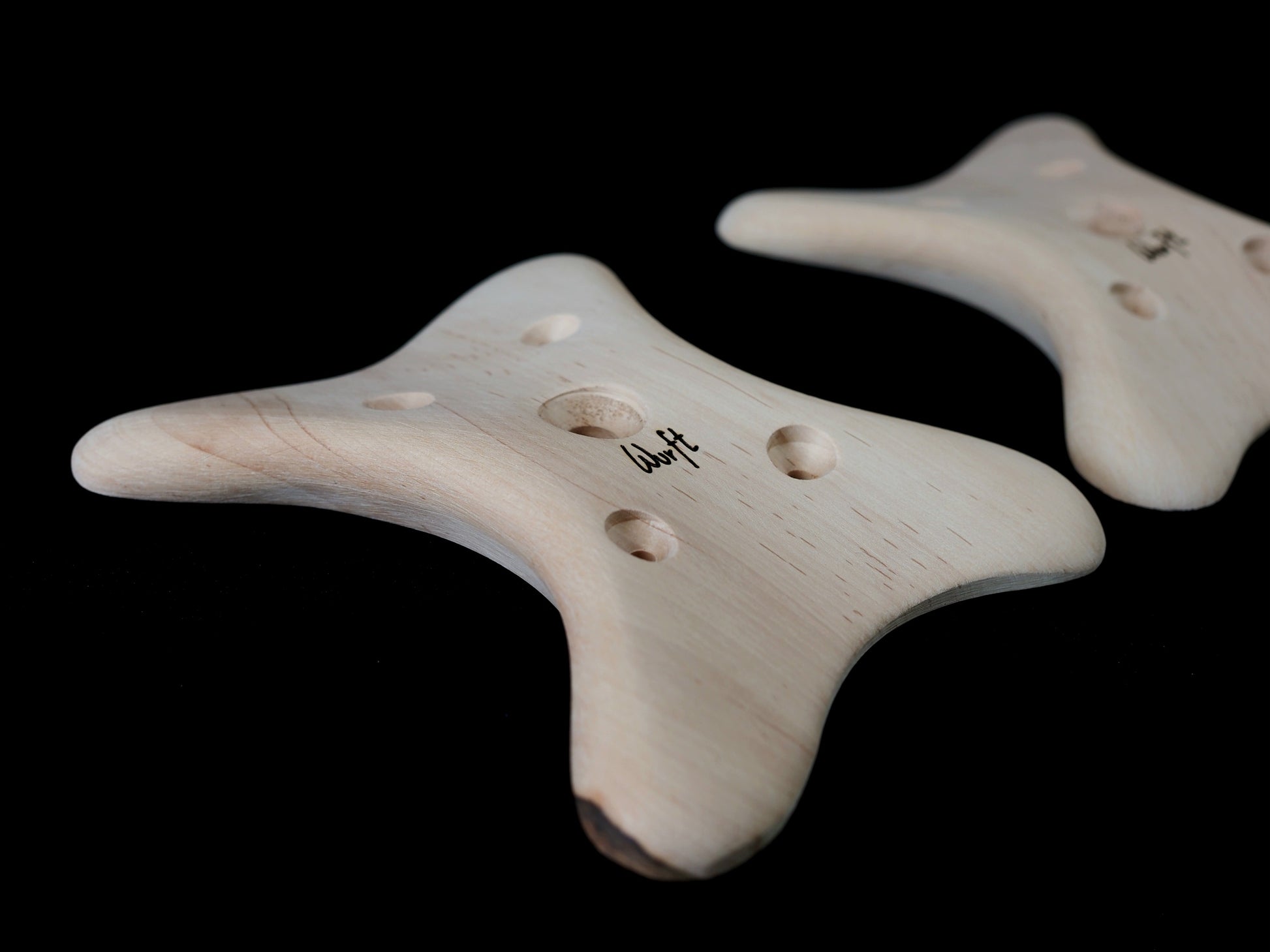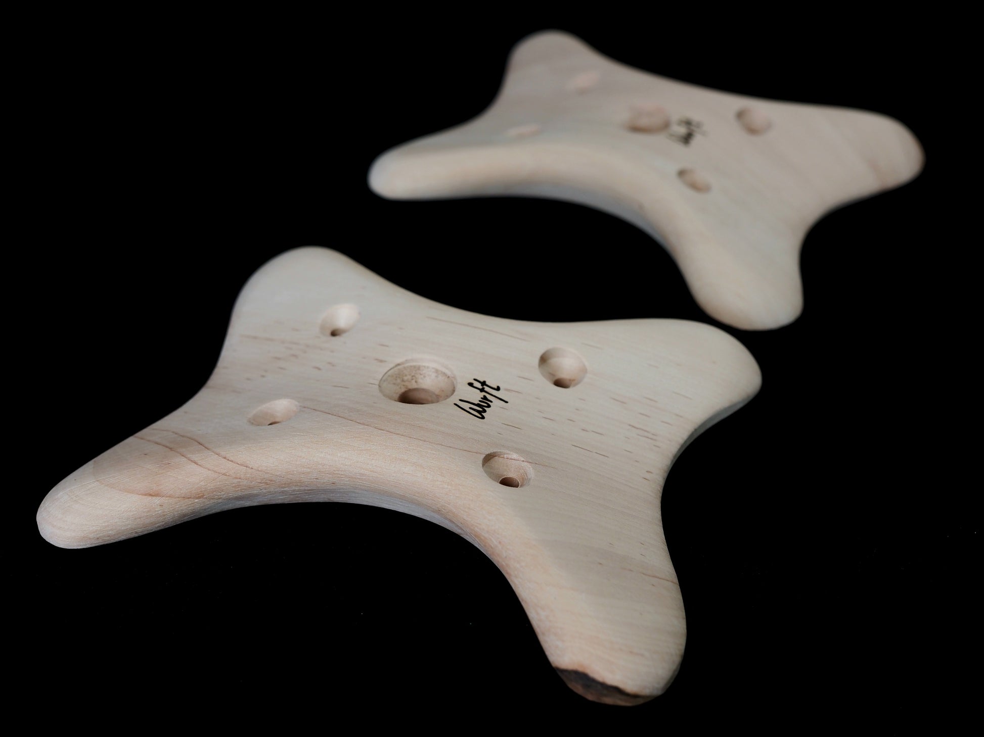 One pair of Symmetrical Butterfly Pinches (22 mm thick) made from European Walnut. The incut angle is 30°.