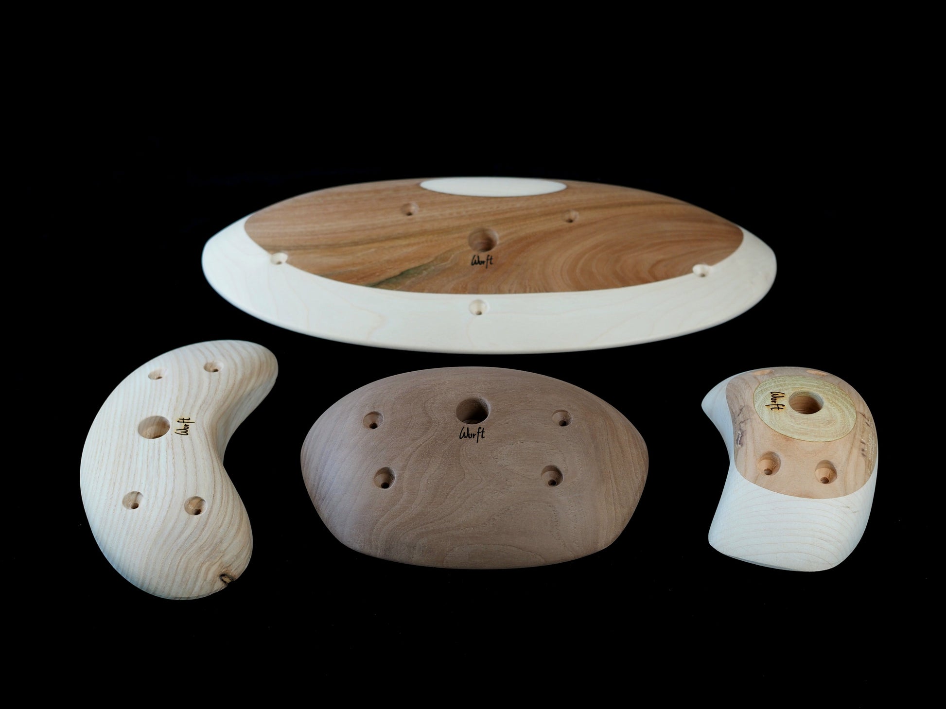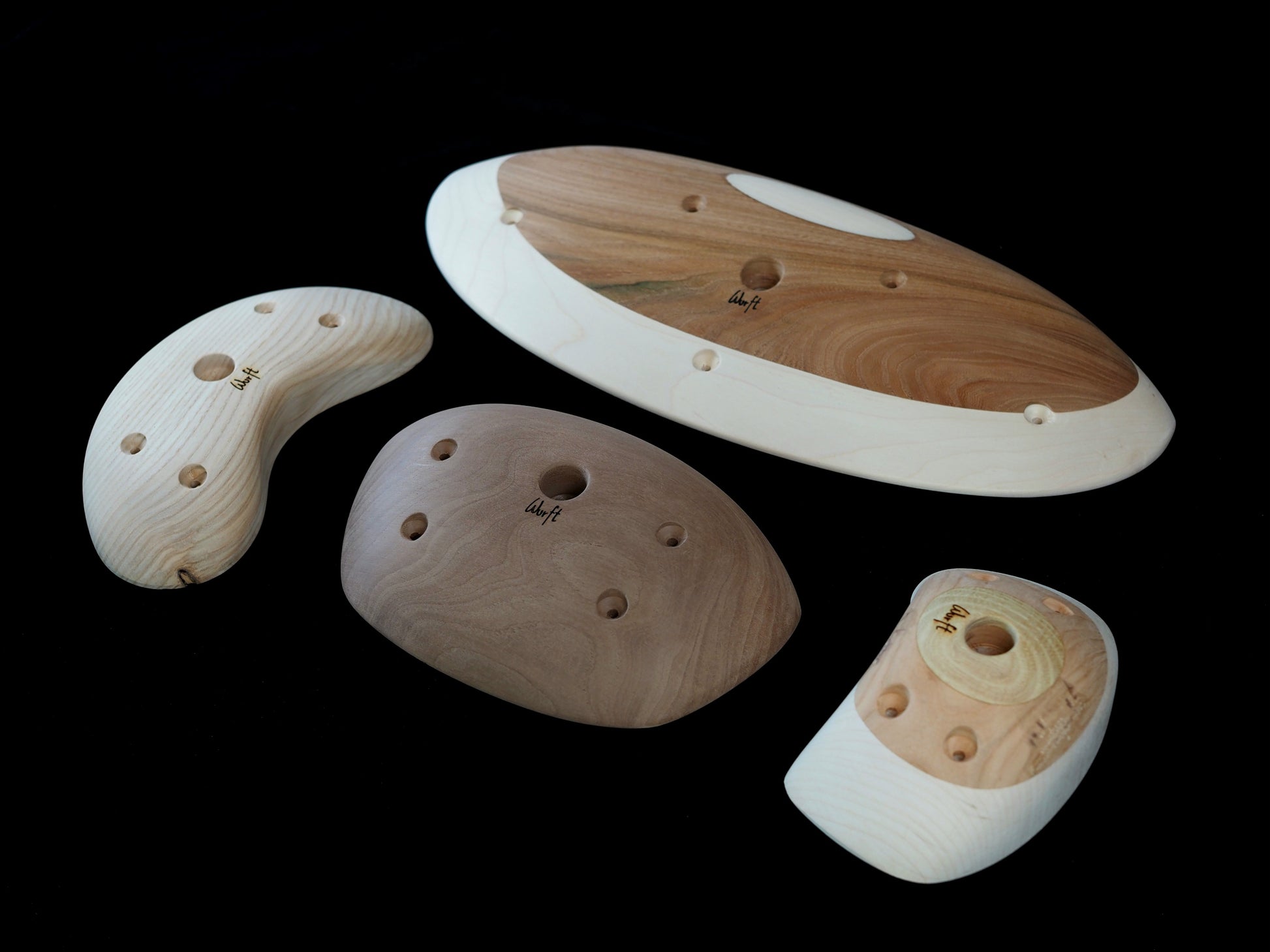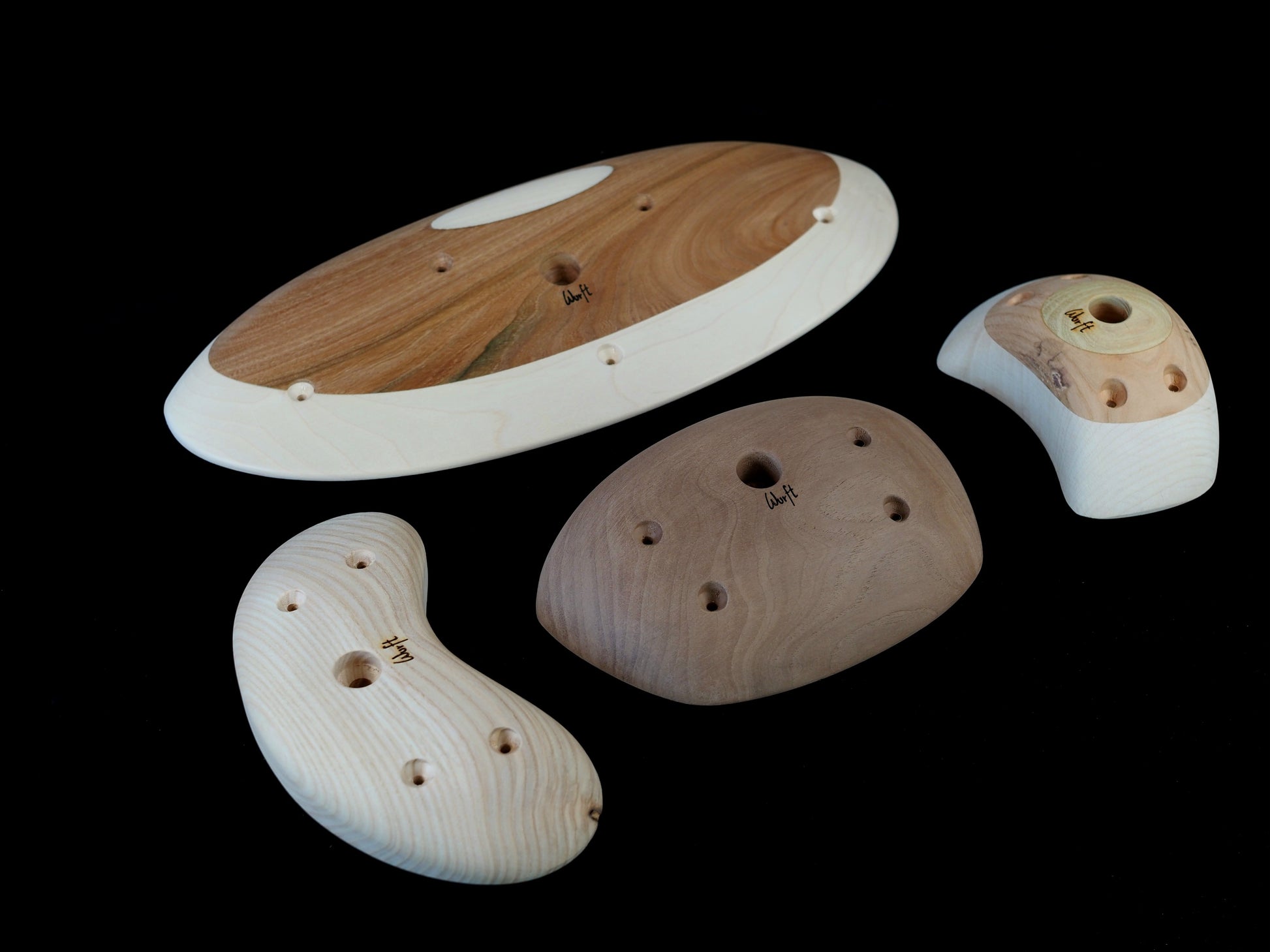 All holds are made from locally sourced hardwood and can be used as screw-on holds but also have a hole for an M10 countersunk bolt. The Extra Large Edge has some minor optical defects (a few wormholes). Hardware is not included. It is recommended to mount the Extra Large Edge with screws.